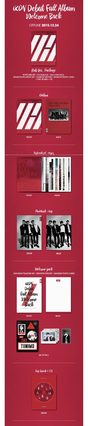 Ikon debut full album welcome back greenred ver. Originally planned to release november 2, 2015, the full version of welcome back was not released until december 24, 2015. Ikon's leader b.i was involved in the production, song and lyrical composition for all the songs in the half album release. Ikon debut full album welcome back greenred ver. It followed the release of a half album that was released two months earlier.. Click images to large view ikon album welcome back entry if world design guide.